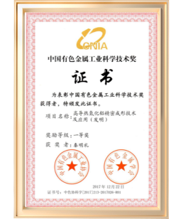 公司依托北京科技大學在氮化鋁領域的研究成果,曾獲“中國有色金屬工業科學技術一等獎(發明)”、 “中國創新創業大賽新材料行業一等獎(全國第一名)”和“國家高新技術企業”等諸多榮譽。