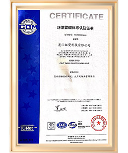 08月 - 兩化融合管理體系評定證書、廈門市新材料企業、ISO14001環境管理體系認證