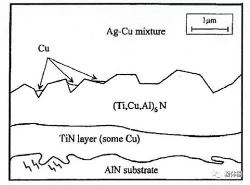 圖7 AlN基板與活性金屬釬料結合界面示意圖